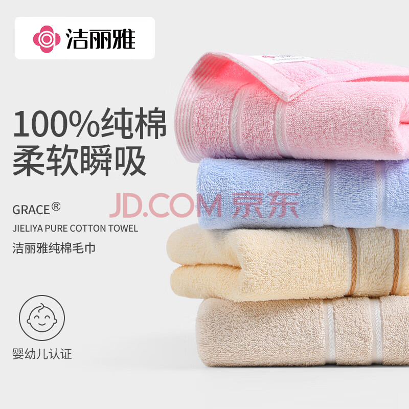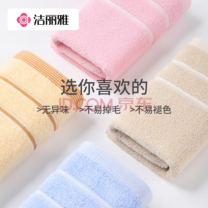 商品相册:洁丽雅毛巾纯棉强吸水8条装新疆长绒棉A类全棉舒适洗脸巾70*34cm80g/条第