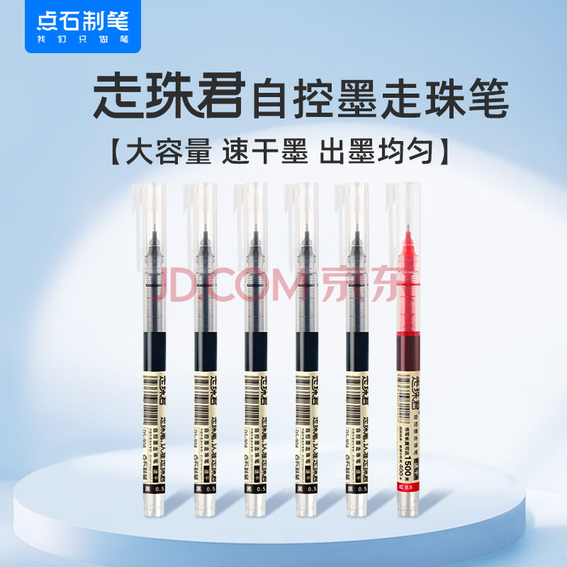 商品相册:点石制笔直液式走珠笔拔帽中性笔红笔大容量0.5性价比学生作业刷题办公签字笔开学季904走珠君5黑1红第
