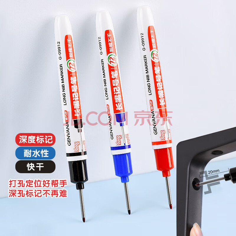 商品相册:金万年油性长头记号笔多用途家具卫浴瓷砖打孔画线深入长嘴标记笔 红10支G-09912-003第