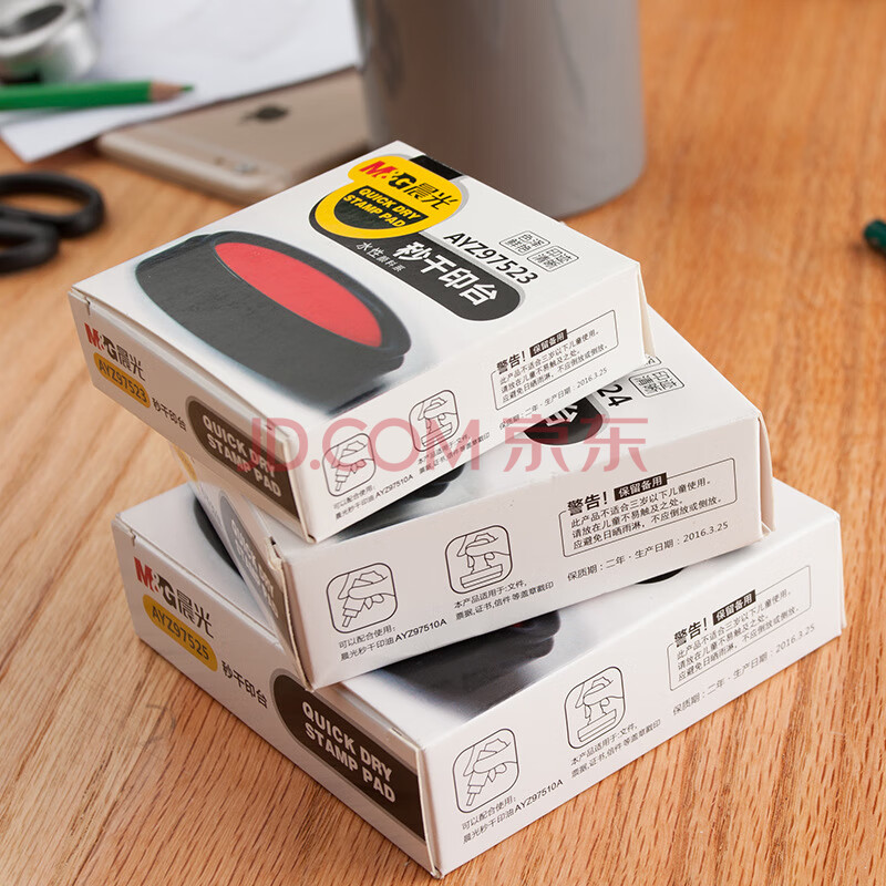 商品相册:晨光秒干印台AYZ97523红色小号便携式财务印尼盒盖章快干水性颜料 12个装第