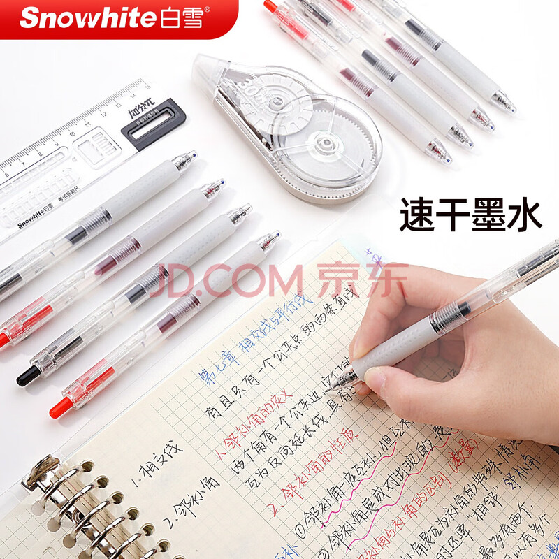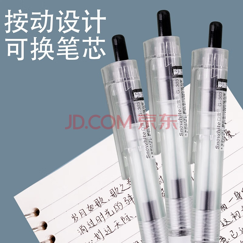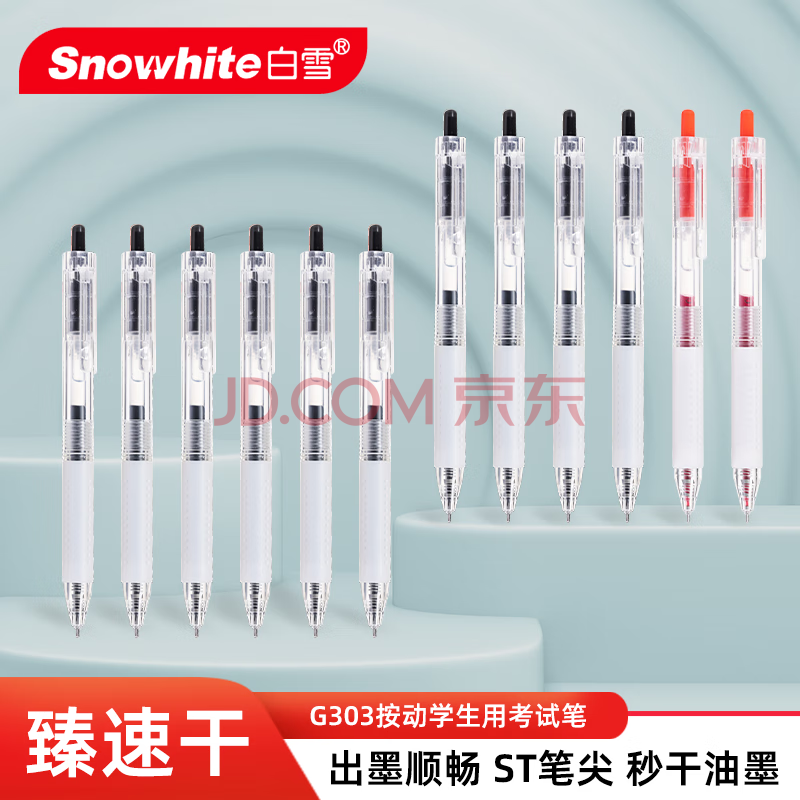 商品相册:白雪(snowhite)G-303中性笔学生用考试刷题做笔记教师专用简约清新文艺无印风手账笔0.5mm按动12支黑10红2第