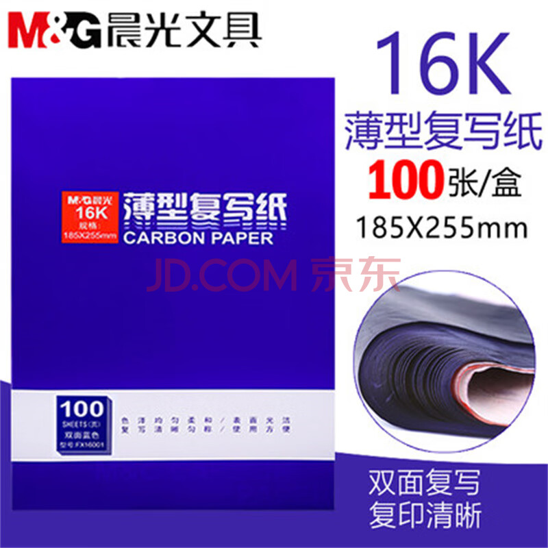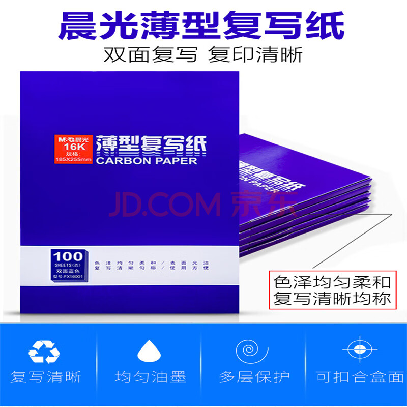 商品相册:晨光办公复写纸蓝色复印纸48k双面复写纸色泽柔和不沾手透蓝纸薄型复刻纸过底纸48k100张 APYVA608 5本装第