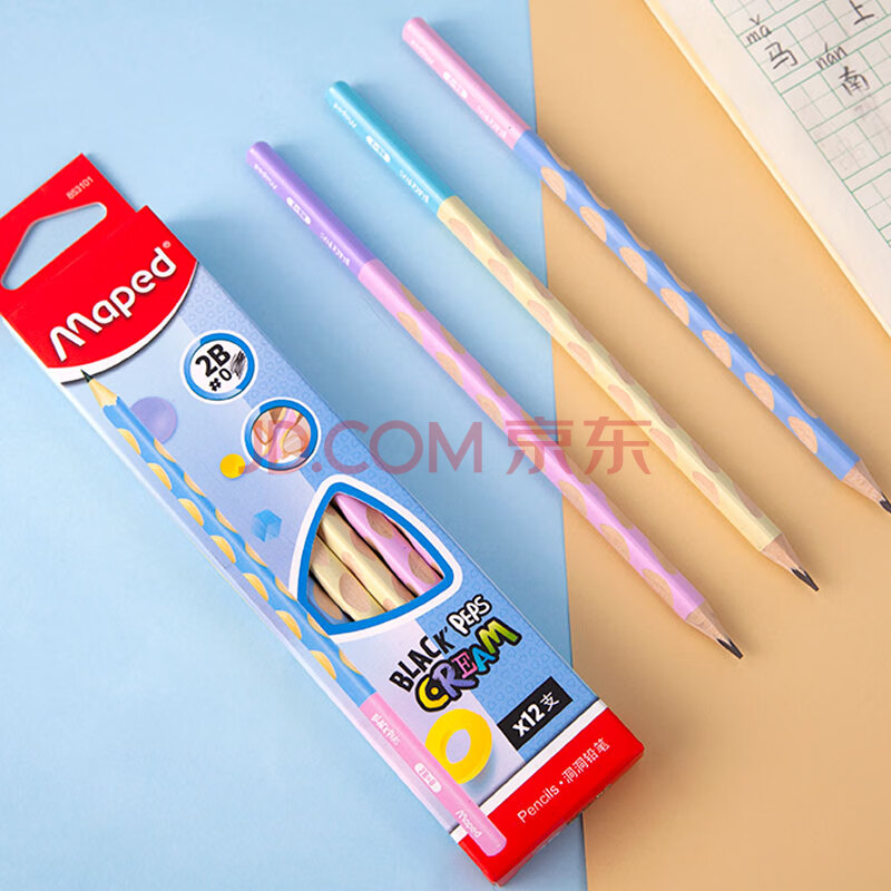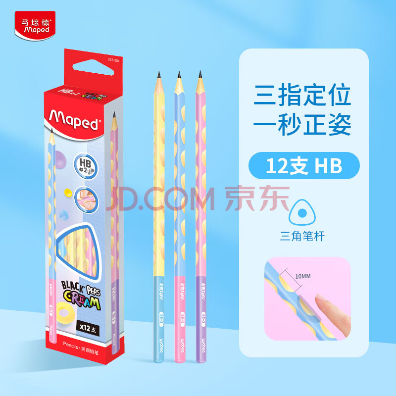商品相册:马培德Maped 奶油色洞洞铅笔12支HB 幼儿园小学生铅笔书法练字笔 儿童三角正姿铅笔高颜值文具853100CH第