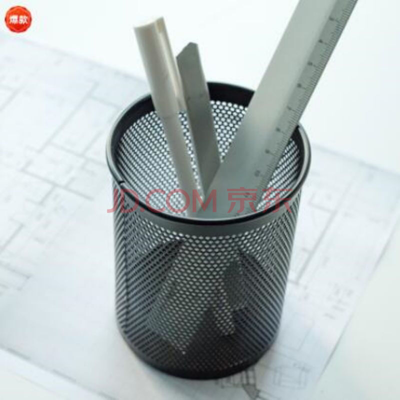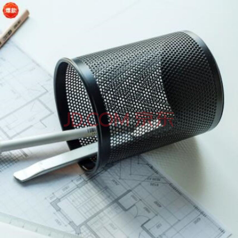 商品相册:得力(deli)909密集金属网纹圆形办公笔筒黑色 (单位:1个装)(黑色)第