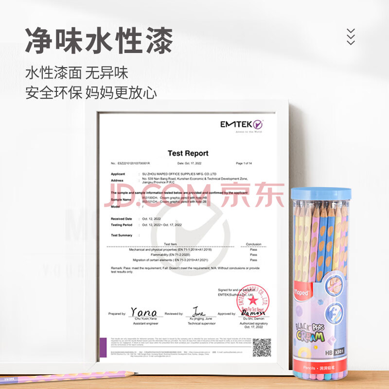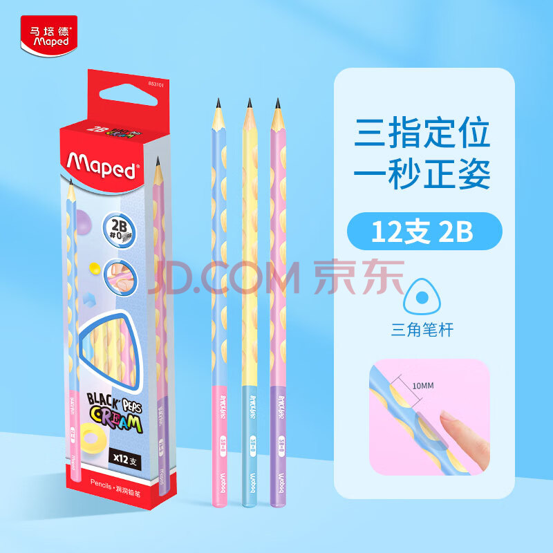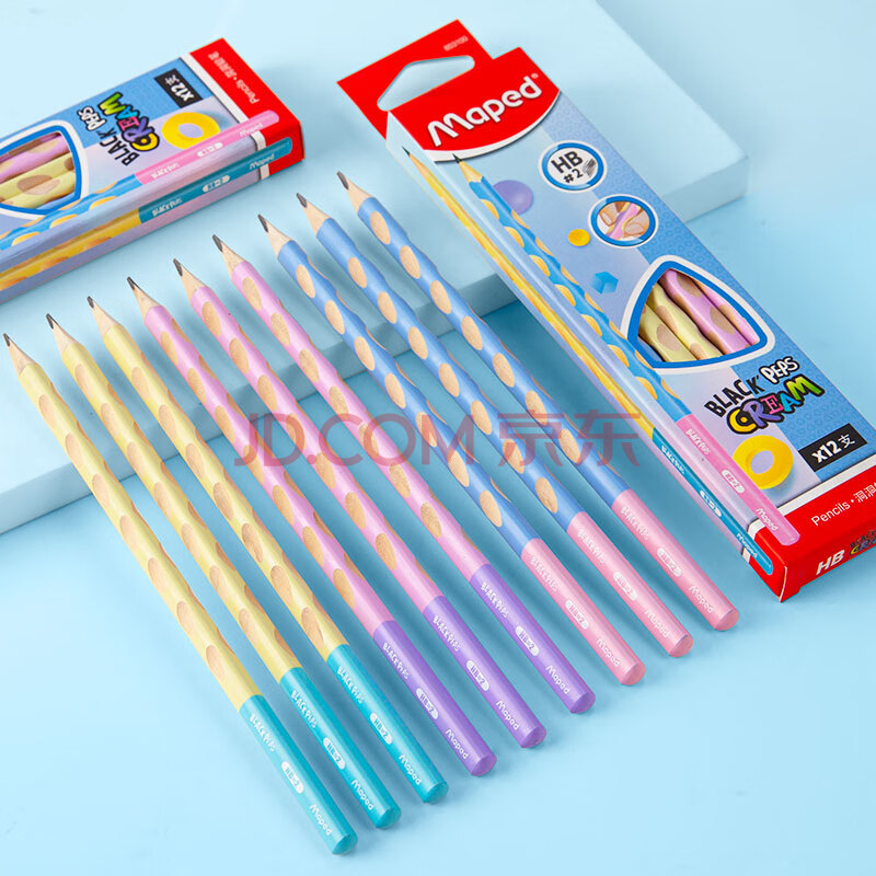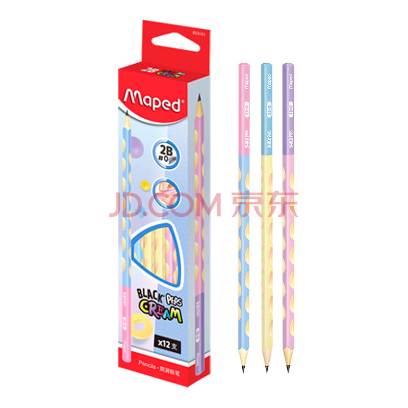 商品相册:马培德Maped 奶油色洞洞铅笔12支2B 儿童铅笔小学生书法写字绘图考试2b铅笔一二三年级文具853101CH第