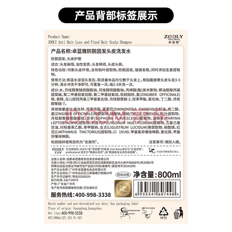 商品相册:卓蓝雅生姜防脱固发洗护套装(防脱洗发水800ml+护发素800ml)第