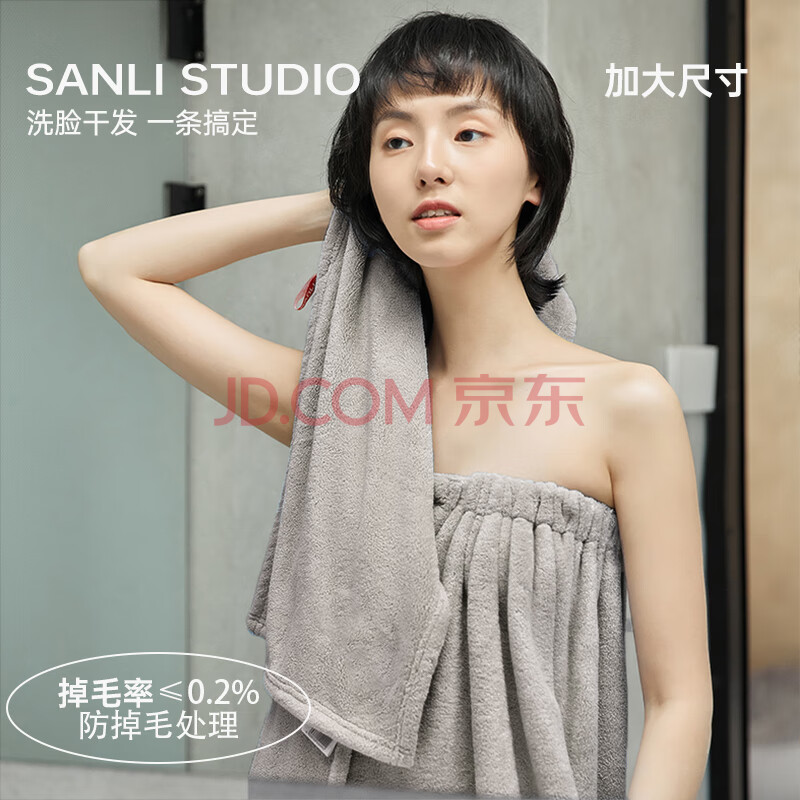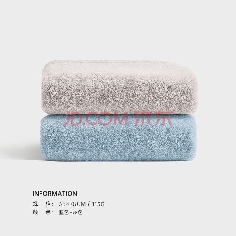 商品相册:三利抗菌加厚毛巾2条A类吸水男女洗脸洗澡家用干发大面巾 蓝/灰第
