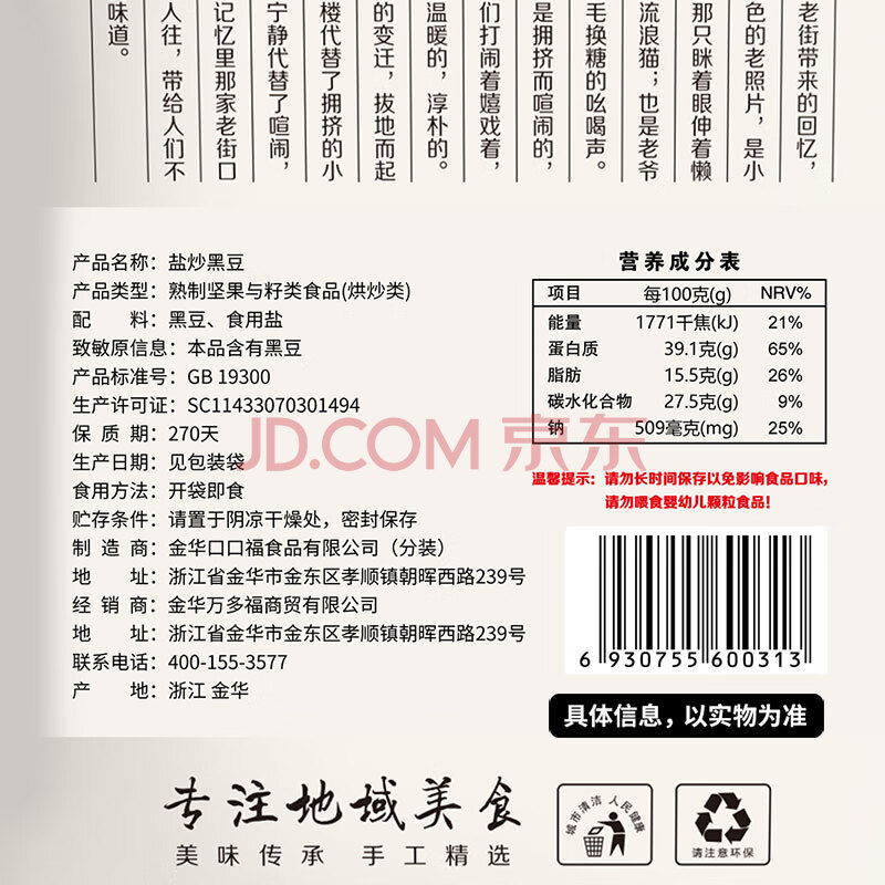 商品相册:老街口炒黑豆250g每日坚果坚果炒货休闲零食干炒即食盐焗年货第1张/共6