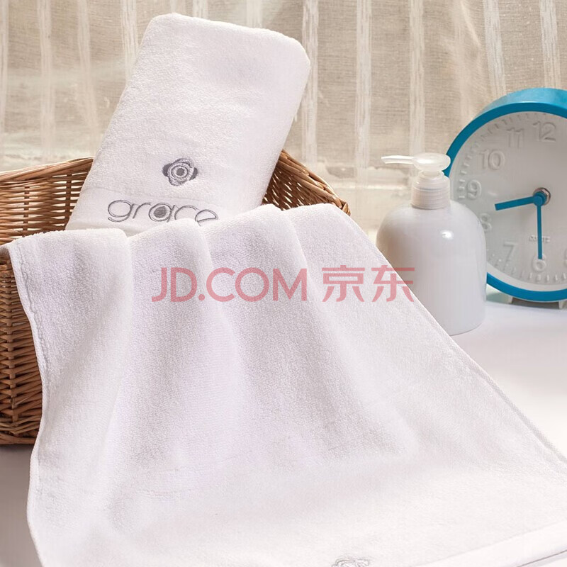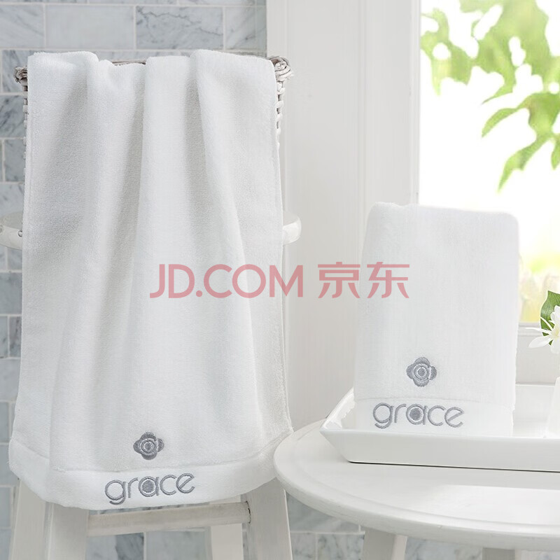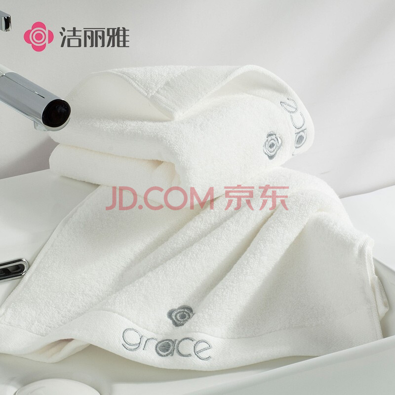 商品相册:洁丽雅(Grace)10A级抗菌防螨毛巾2条装纯棉加大加厚全无捻绣花五星级酒店类面巾第