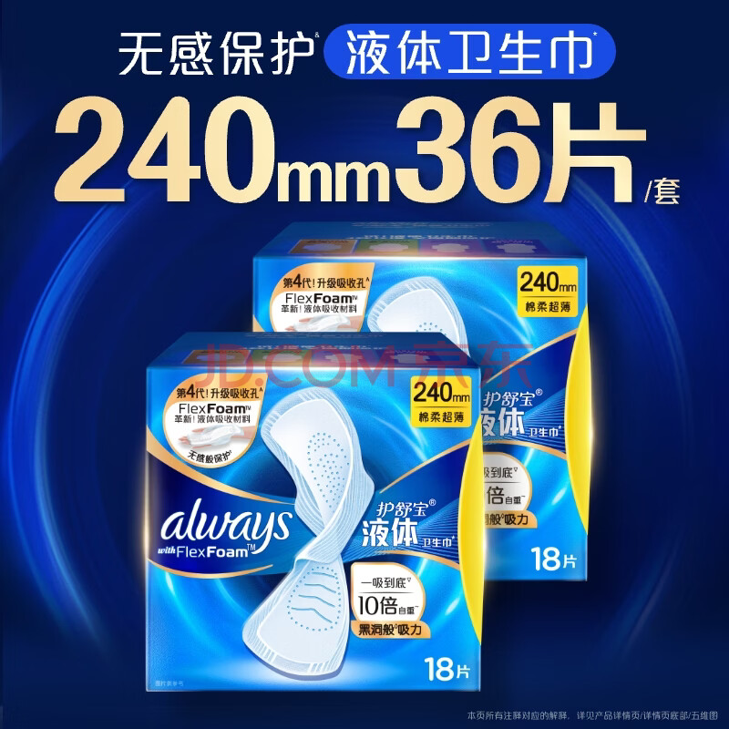 商品相册:护舒宝液体卫生巾日用组合240mm36片姨妈巾无感保护京东自营官方旗舰第