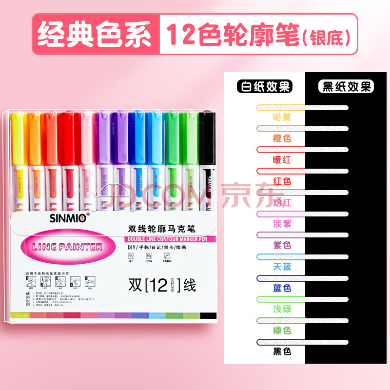 商品相册:金值 12色加粗珠光双线空心轮廓笔 荧光笔双色笔闪光笔手抄报专用笔彩笔手账笔果冻笔马克笔第
