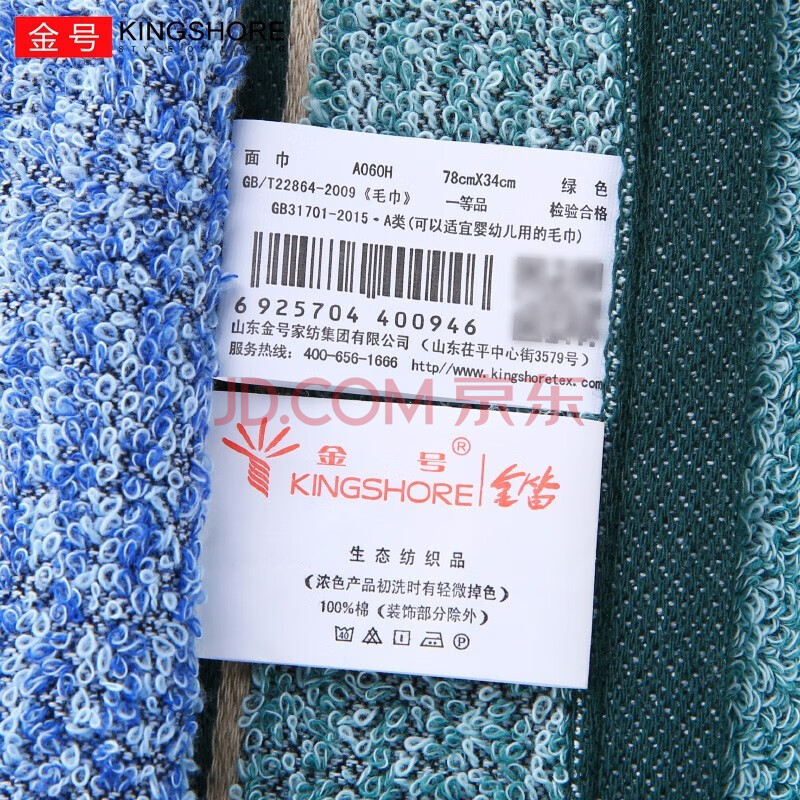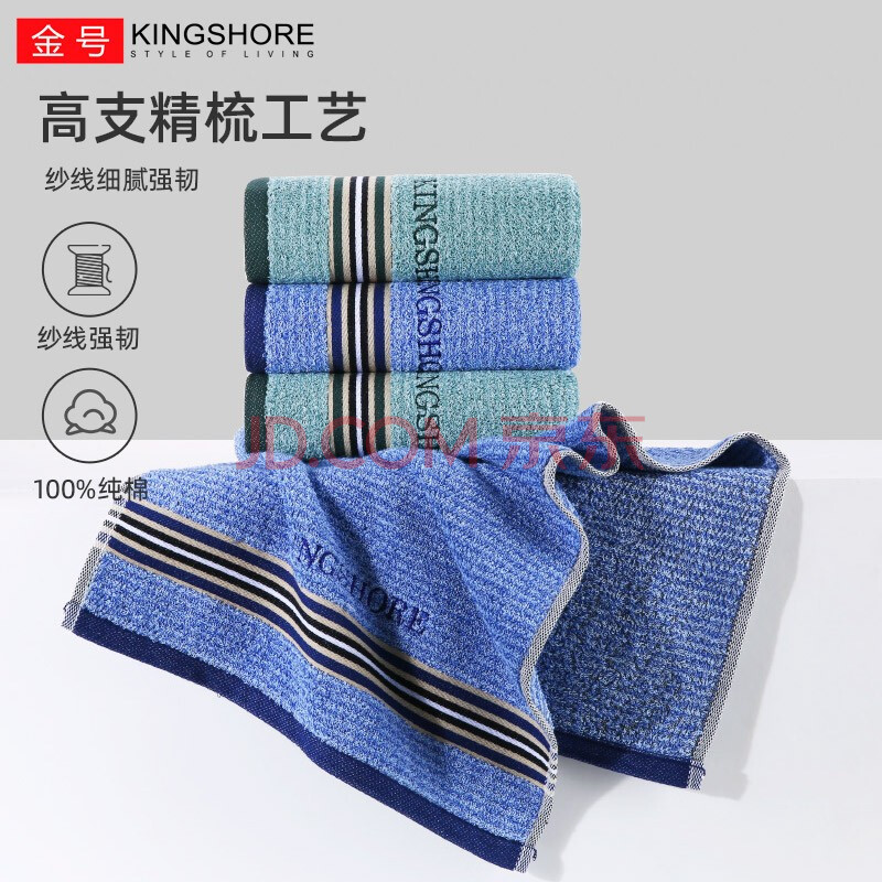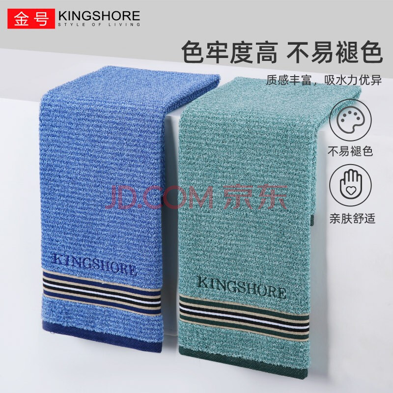 商品相册:金号毛巾 新疆优质纯棉 纯棉吸水面巾2条装 蓝/绿 78*34cm 95g/条第