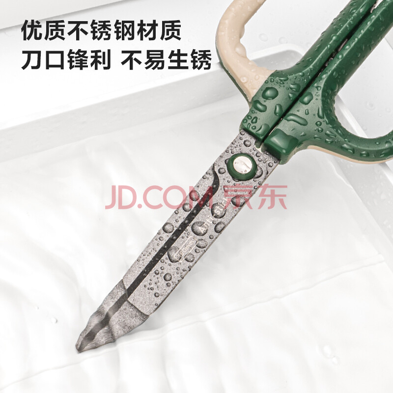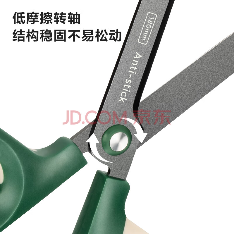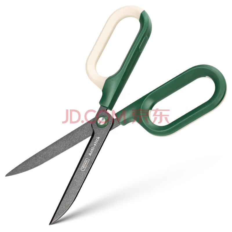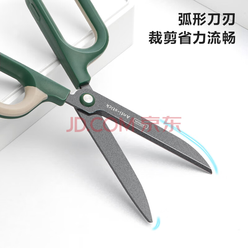 商品相册:得力(deli)大号弧形特氟龙省力剪刀 德国创意设计特氟龙防粘胶复古色系双拼色设计 绿色QG157第