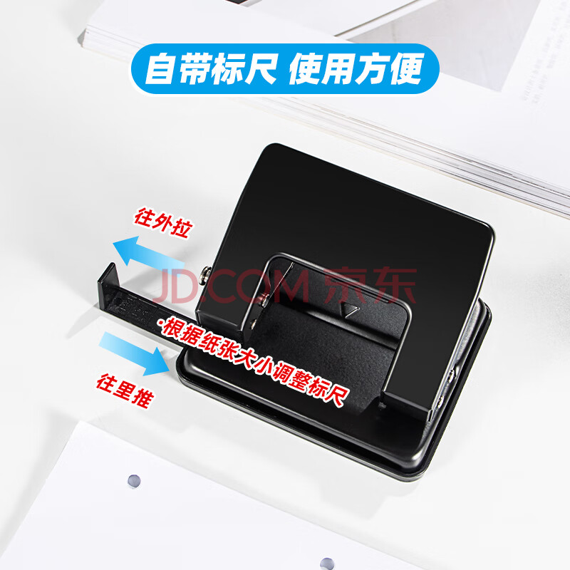 商品相册:天色 大号双孔打孔器打孔机装订活页本带标尺 办公文具 可打20页(孔径6mm/孔距80mm) TS-1006 黑色第