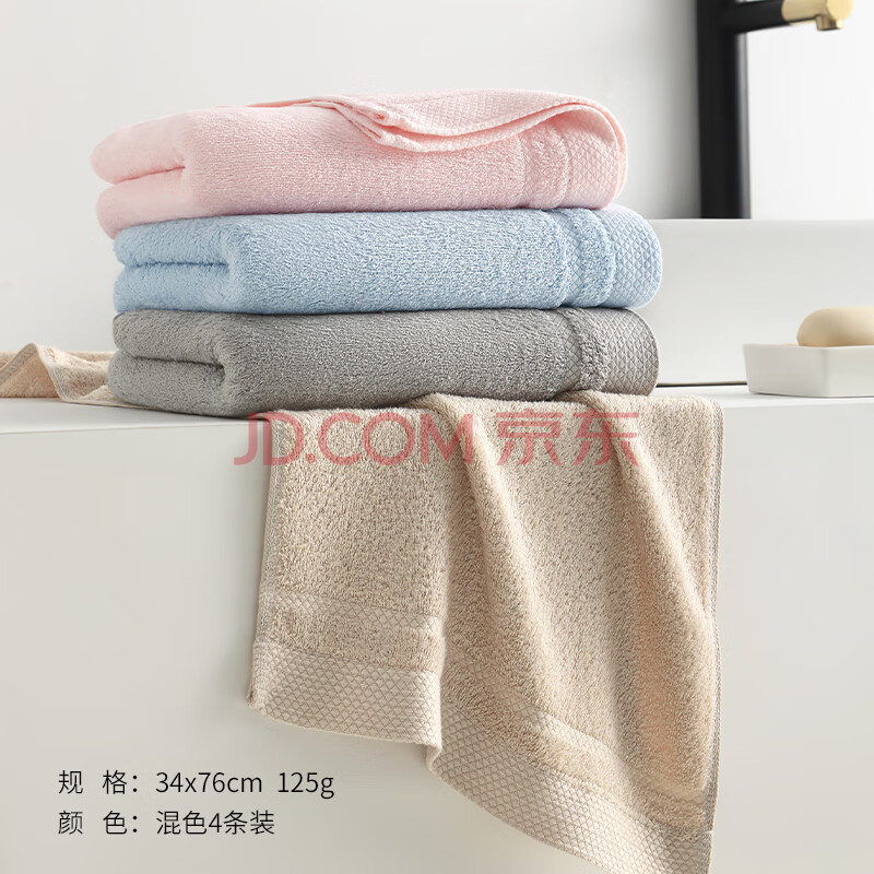 商品相册:竹一百毛巾抗菌纯竹纤维毛巾4条加厚成人吸水洗脸干发大毛巾手巾34*76cm第