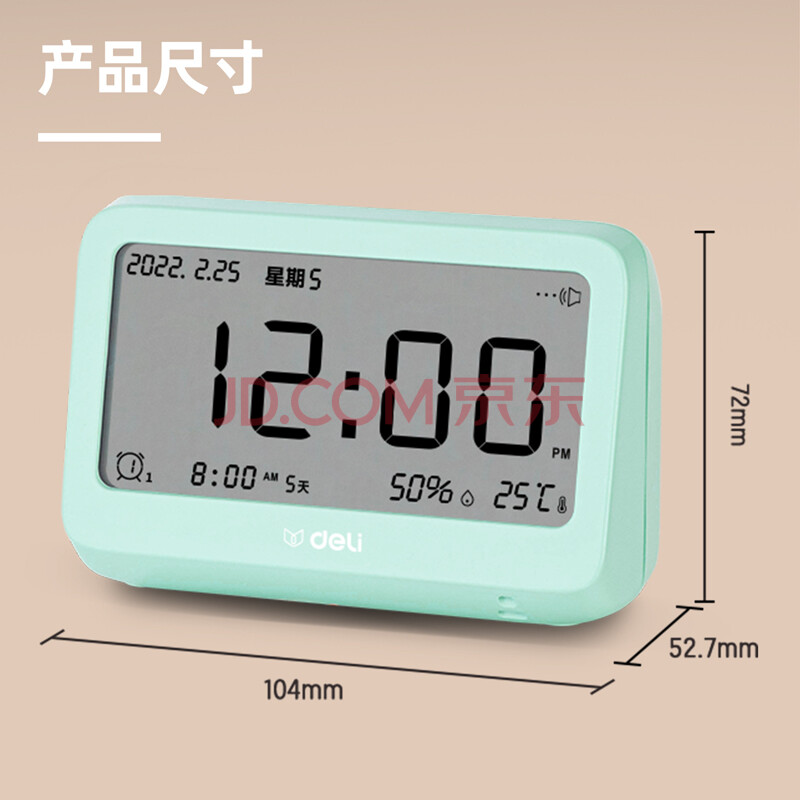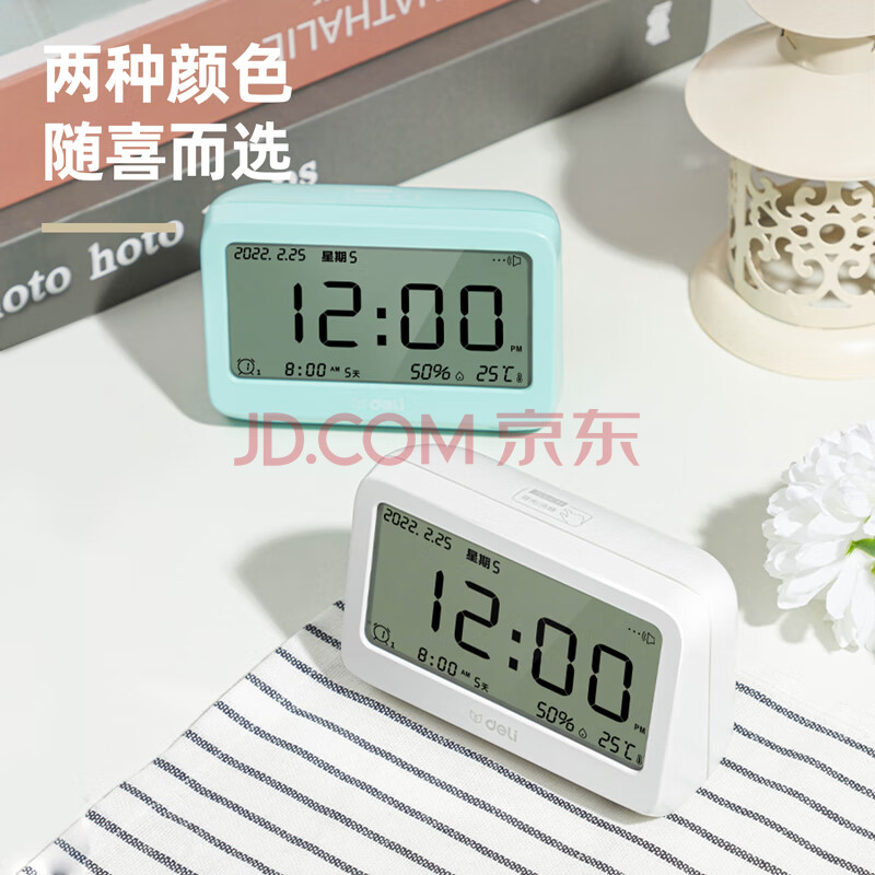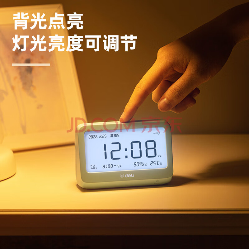 商品相册:得力(deli)多功能电子闹钟 背光电子钟 温湿度计功能 学生助手 白色LE100-WH第