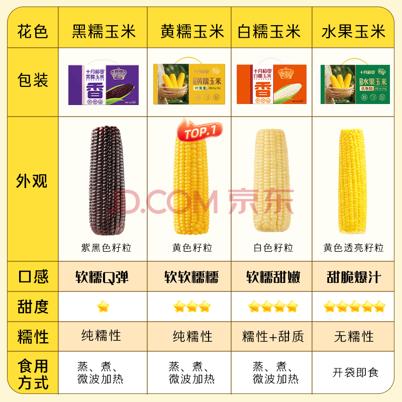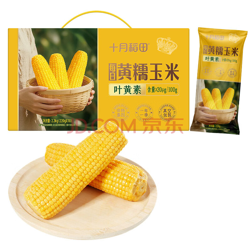 商品相册:十月稻田 黄甜糯玉米 10根 4.4斤 东北甜黏玉米棒 杂粮礼盒 早餐苞米第