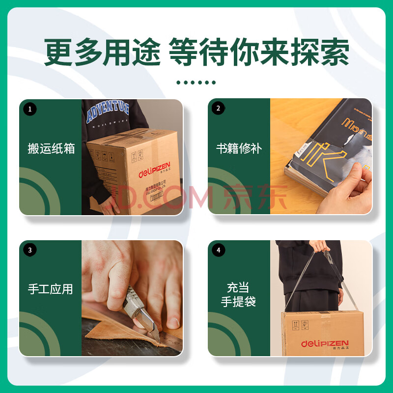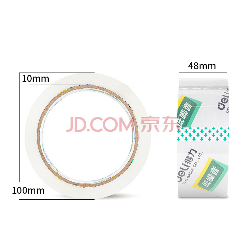 商品相册:得力(deli)(deli)低噪音封箱胶带/打包胶带 48mm*60y*50μm(54.86m/卷) 单卷装 办公用品 JD91第