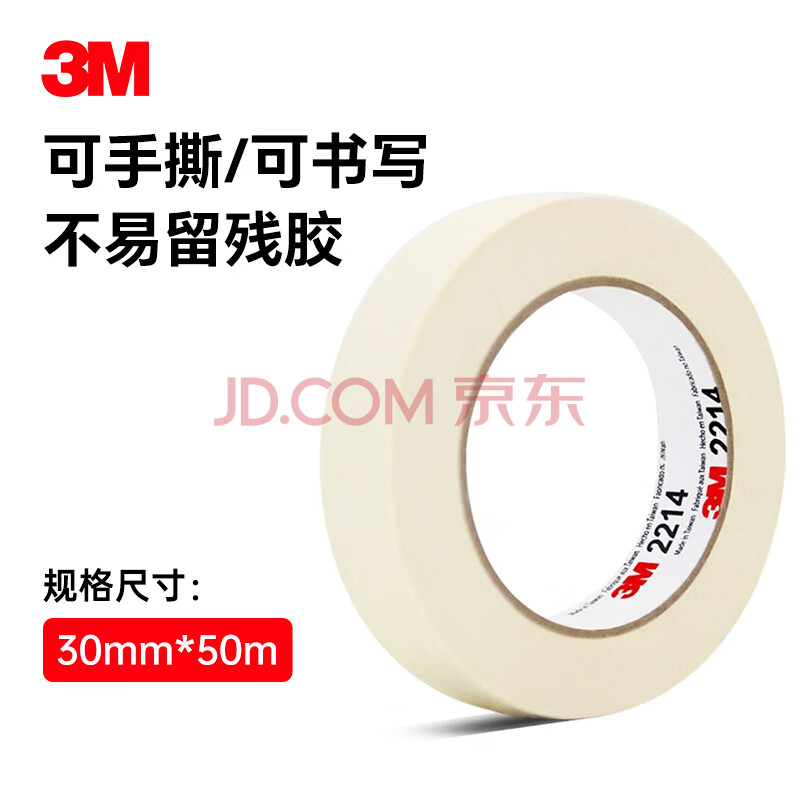 商品相册:3M2214白色美纹纸胶带 拼豆豆DIY 耐高温办公家装日用汽车喷涂遮蔽无痕喷漆固定保护 30mm*50m 1卷装第