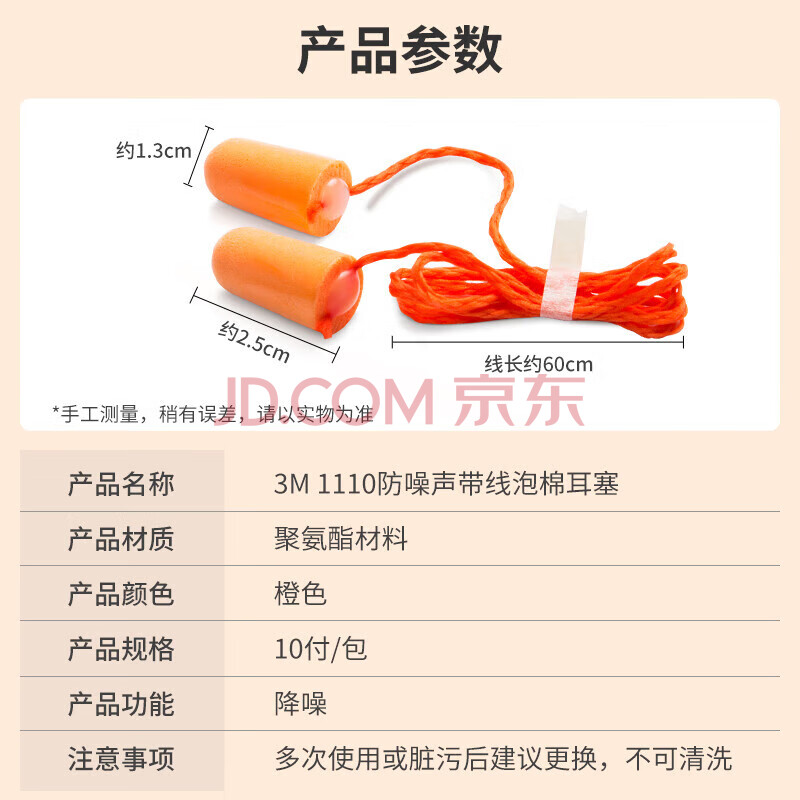 商品相册:3M 隔音降噪耳塞 办公睡觉驾驶射击工作装修学习 1110带线耳塞 [经济实惠】10付装第