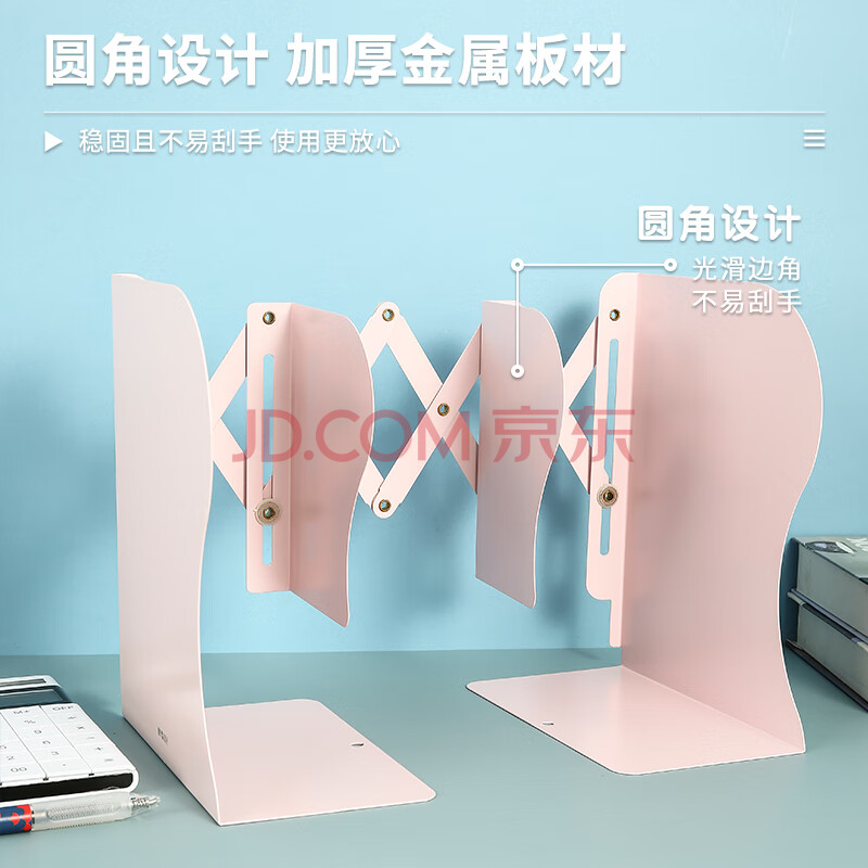 商品相册:晨光(M&G)50cm可伸缩桌面书立 桌上简易收纳金属书架 大号书立 樱花粉ABS917C537第