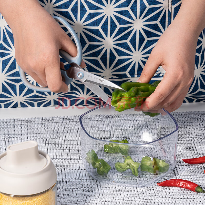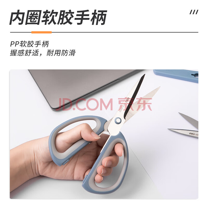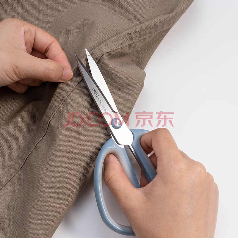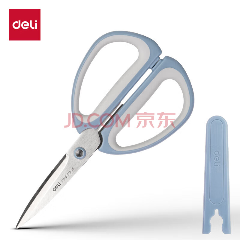 商品相册:得力(deli)176mm中号家用剪刀 不锈钢厨房剪刀 手工缝纫办公小剪子 包胶手柄 蓝 TJ13第