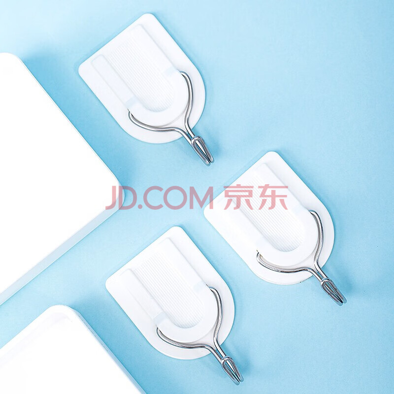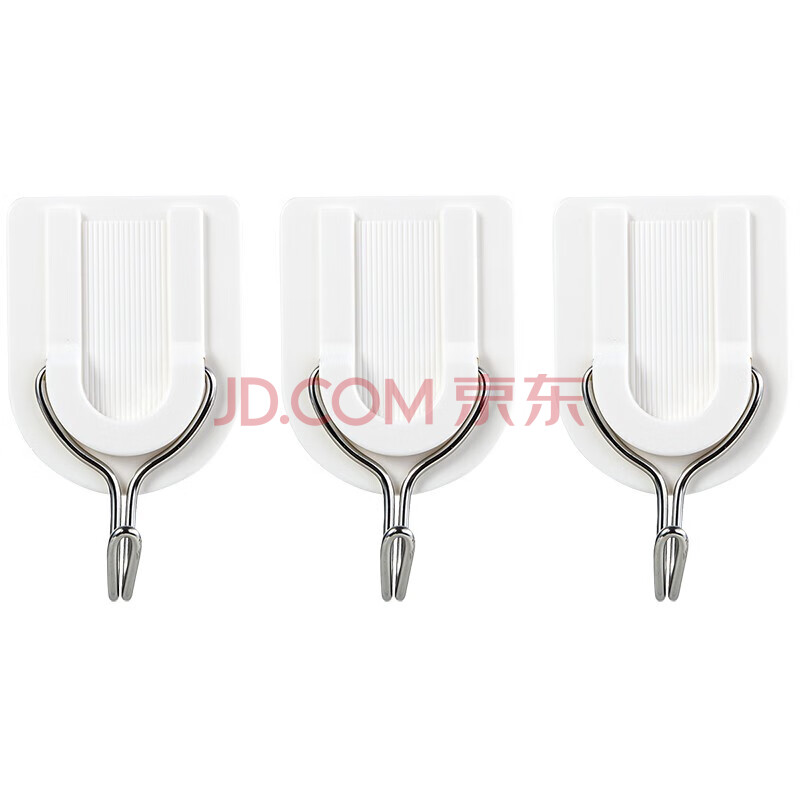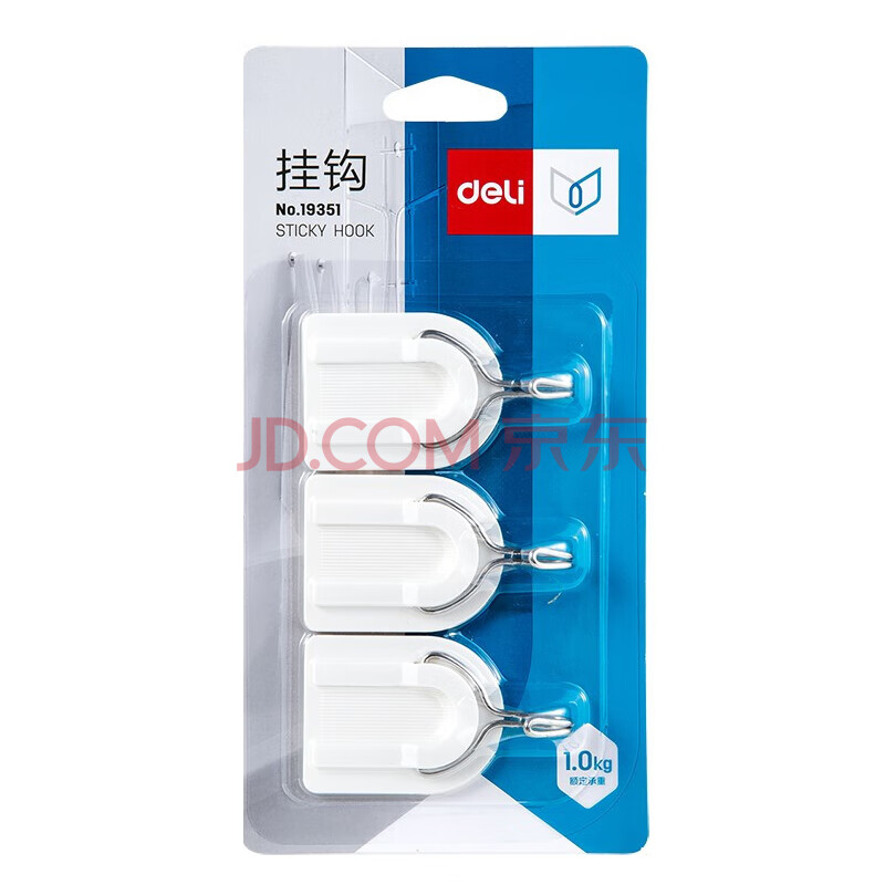 商品相册:得力(deli)19351粘钩 强力粘胶挂钩 挂衣钩 厨房浴室墙壁免钉门后挂衣钩 3只/卡第
