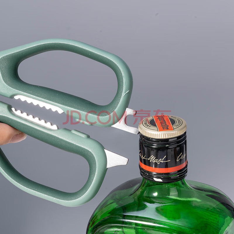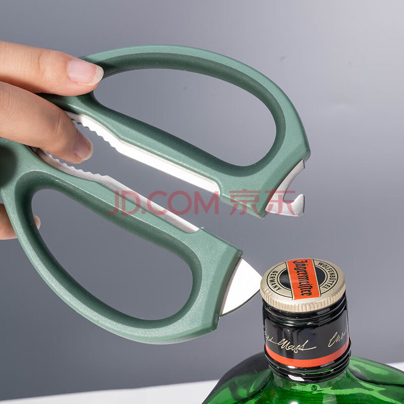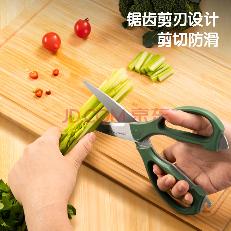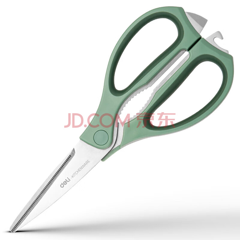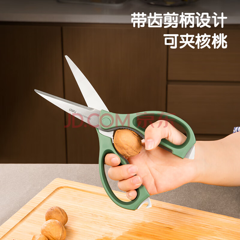 商品相册:得力(deli)食品级厨房剪刀 可夹核桃撬贝壳 多功能家用不锈钢剪骨剪子 鸡骨剪 绿 TJ23第