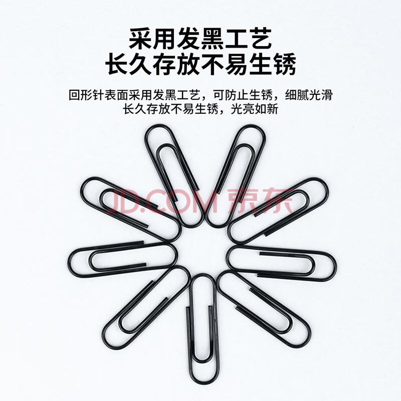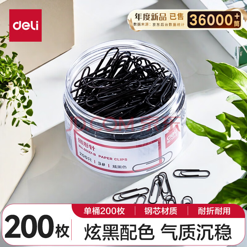 商品相册:得力(deli)(deli)29mm发黑回形针 3号金属曲别针 黑色防锈处理 200枚/筒 办公室文具用品 0037-B第