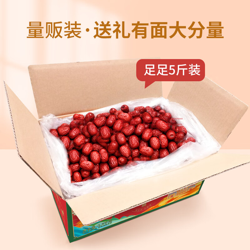 商品相册:楼兰丝路新疆红枣5斤箱装量贩灰枣蜜饯果干 休闲零食小枣送礼2500g/箱第