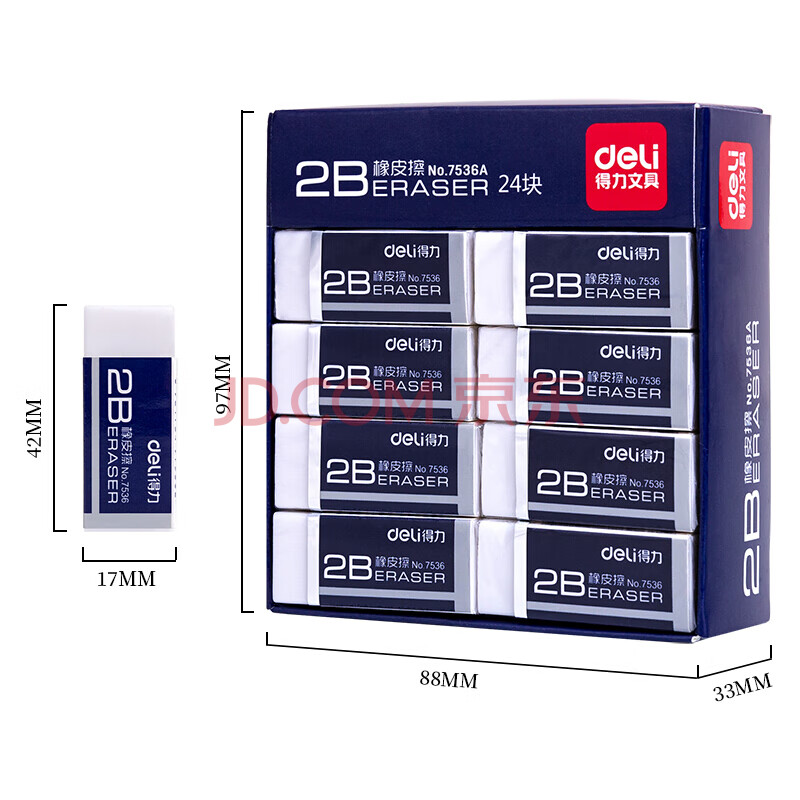 商品相册:得力(deli)7536A橡皮 简约办公考试2B橡皮擦 白色学生美术橡皮 24块【ZY】第