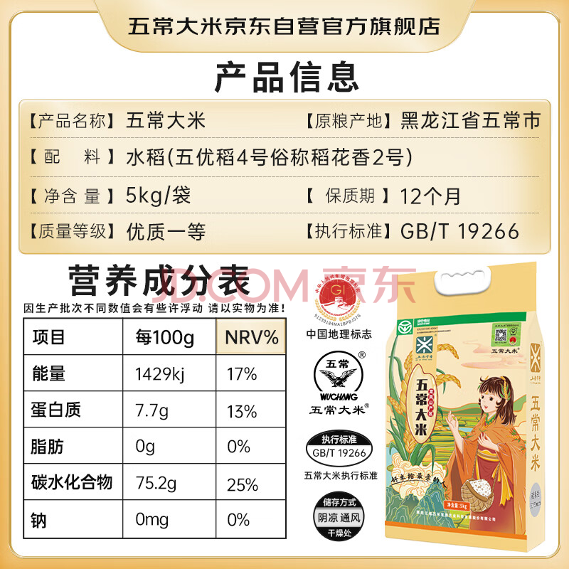 商品相册:五常大米官方溯源 五米常香优质五常大米10斤 原粮稻花香2号绿色认证 新米第