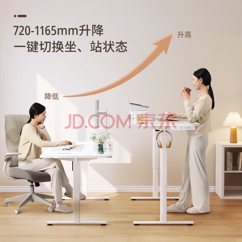 商品相册:乐歌电动升降电脑桌电竞升降书桌办公学习桌子E2雅白色1.4m第
