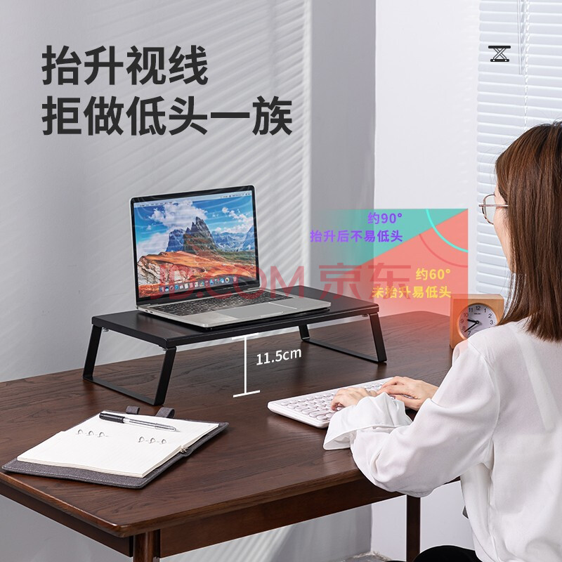 商品相册:得力(deli)显示器支架 显示器增高架电脑桌散热架 台式简易长条桌黑色 90002第