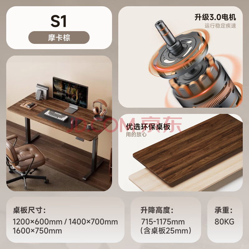商品相册:Brateck北弧电动升降桌电脑桌书桌电竞桌站立办公学习边桌子工作升降台S1第