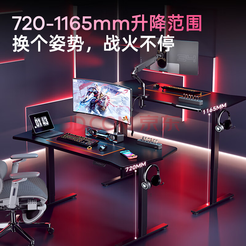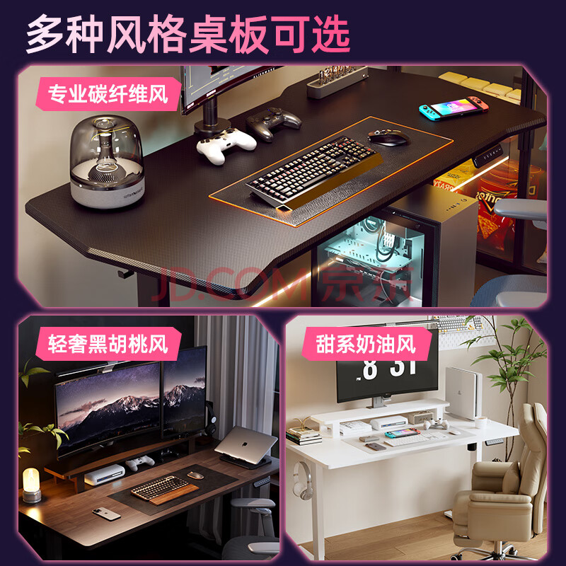 商品相册:乐歌黑武士电竞桌电动升降桌电脑办公桌碳纤维纹理电竞板1.4M第