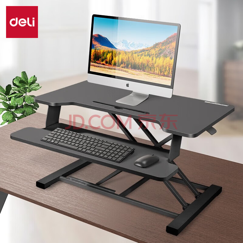 商品相册:得力(deli)双层升降电脑桌办公升降台折叠站立式电脑支架 90006黑色第