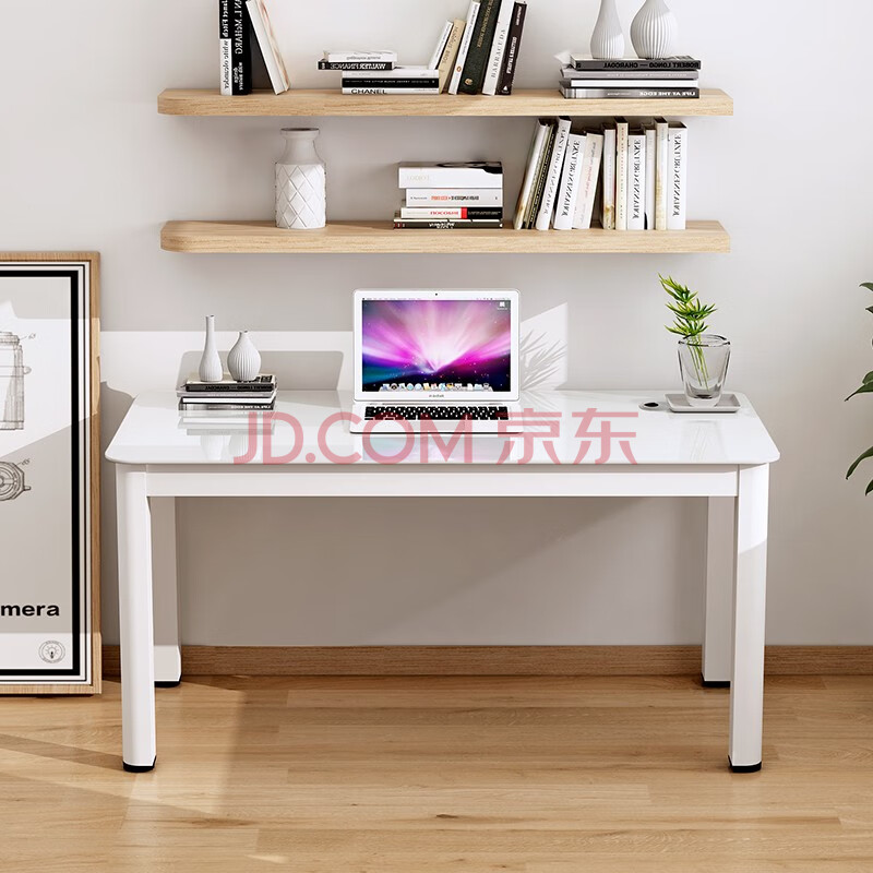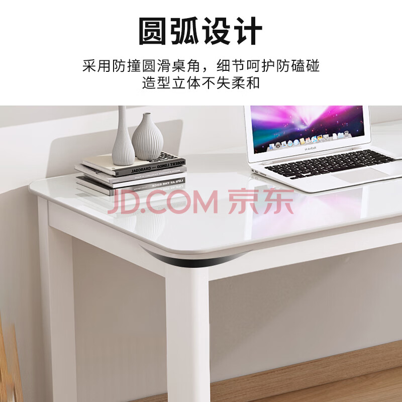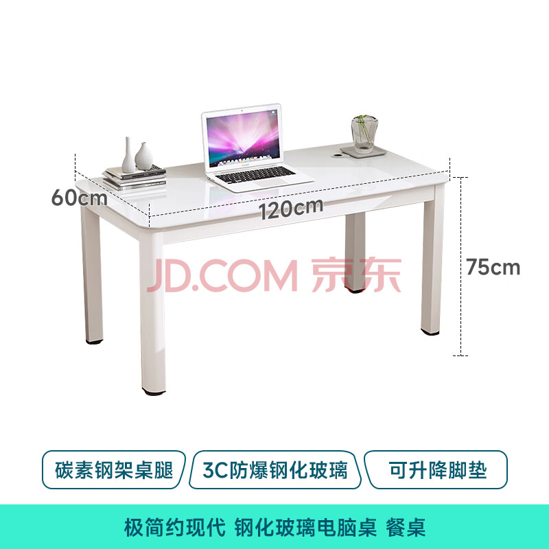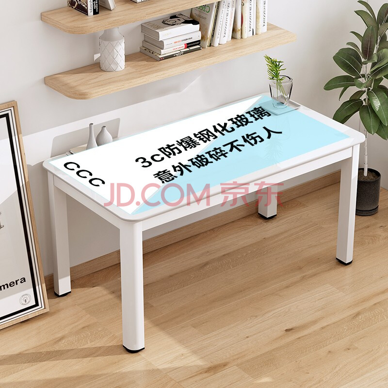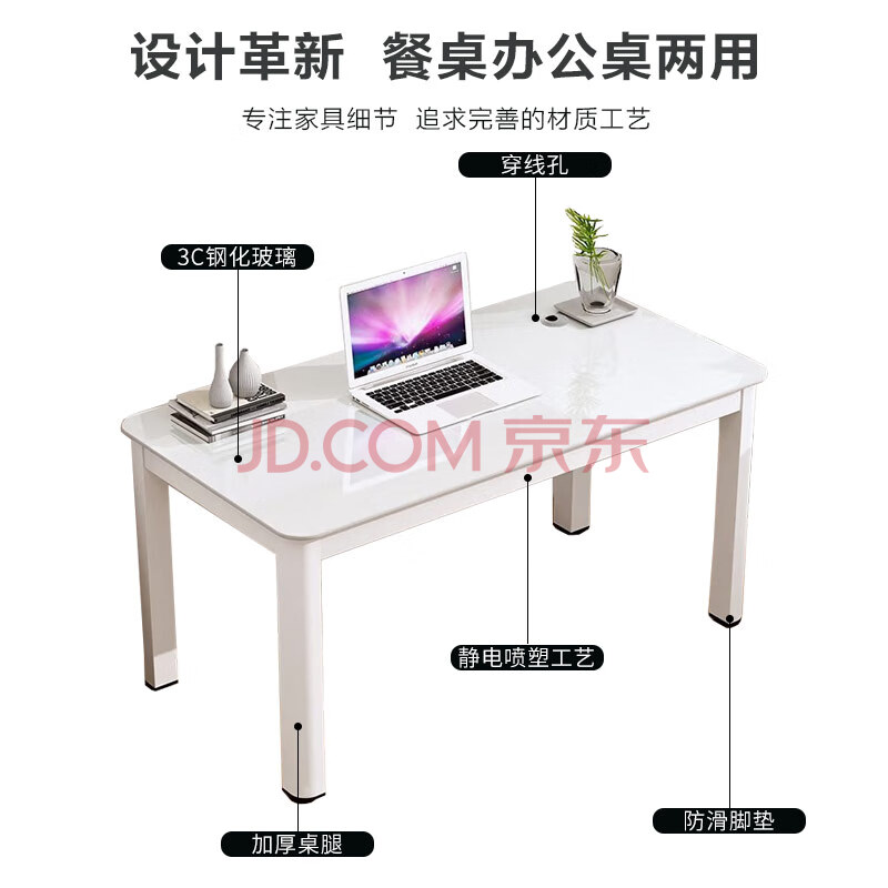商品相册:凡社 电脑桌台式 极简约现代穿线孔玻璃书桌学习办公家用餐厅桌两用桌第