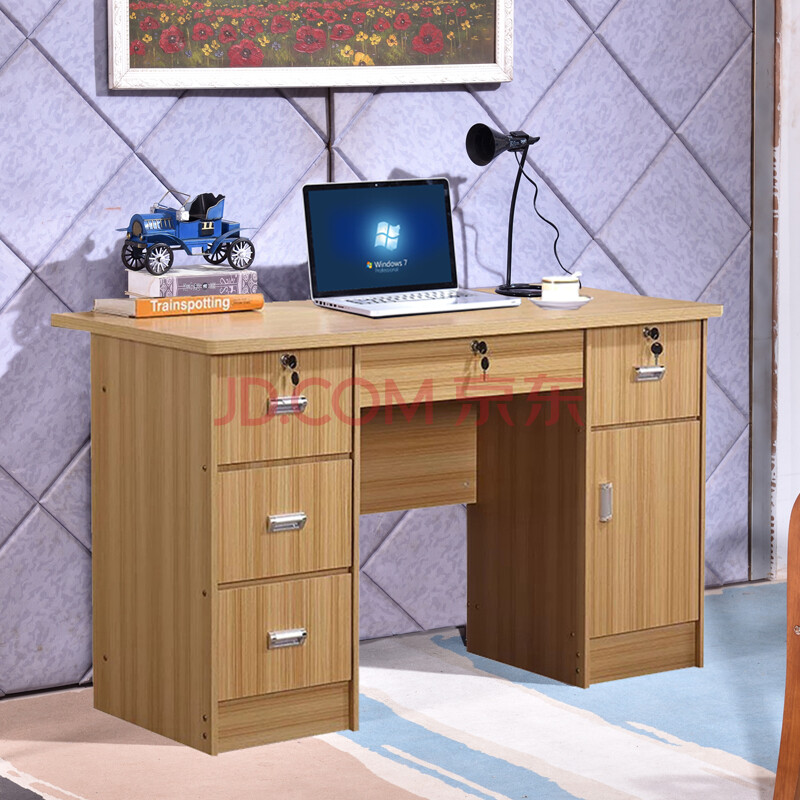 商品相册:迫不及待 电脑桌职员简约现代台式电脑桌带锁卧室学生家用书桌子工作桌1.2米1.4米带抽屉 (黑胡桃色)第1张/共3