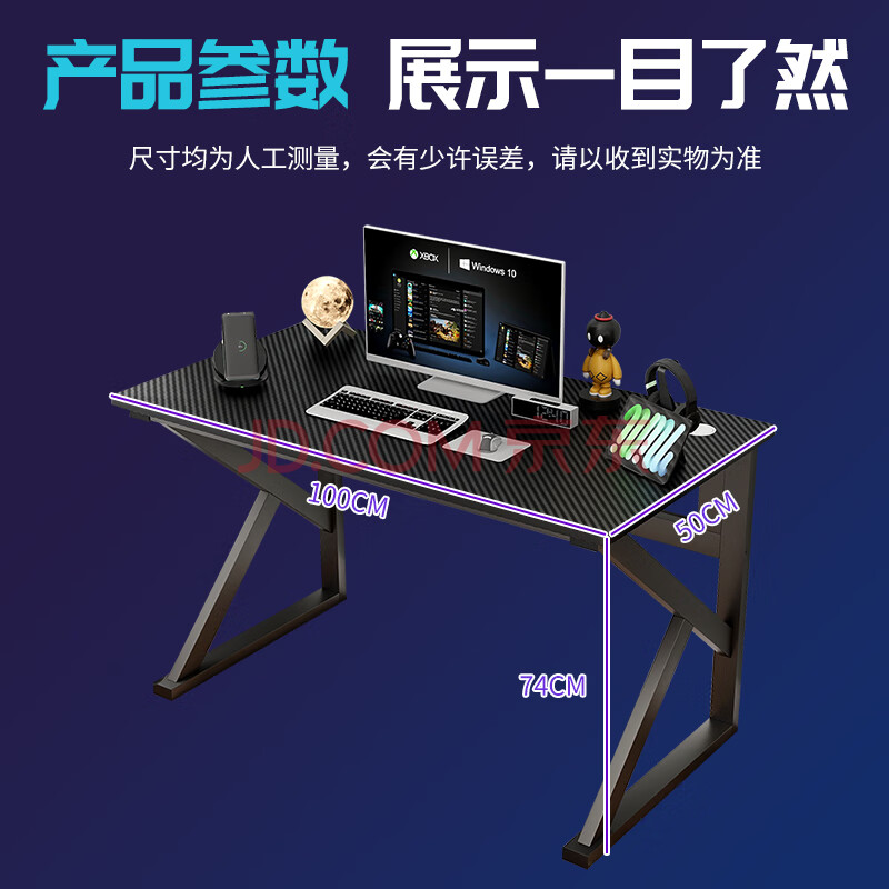 商品相册:雅美乐电脑桌台式加粗加厚书桌学习桌办公家用简易电竞游戏桌黑色100*50第