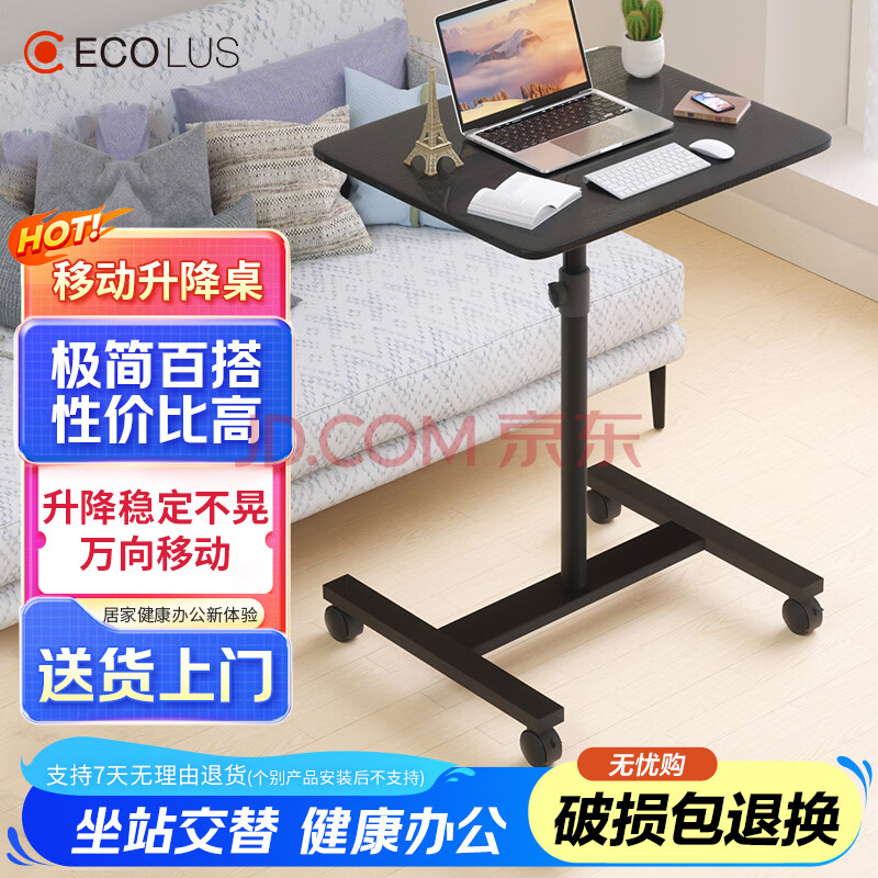 商品相册:宜客乐思(ECOLUS)升降办公桌坐立自由办公可移动学习培训书桌人体工学桌LST808BK第