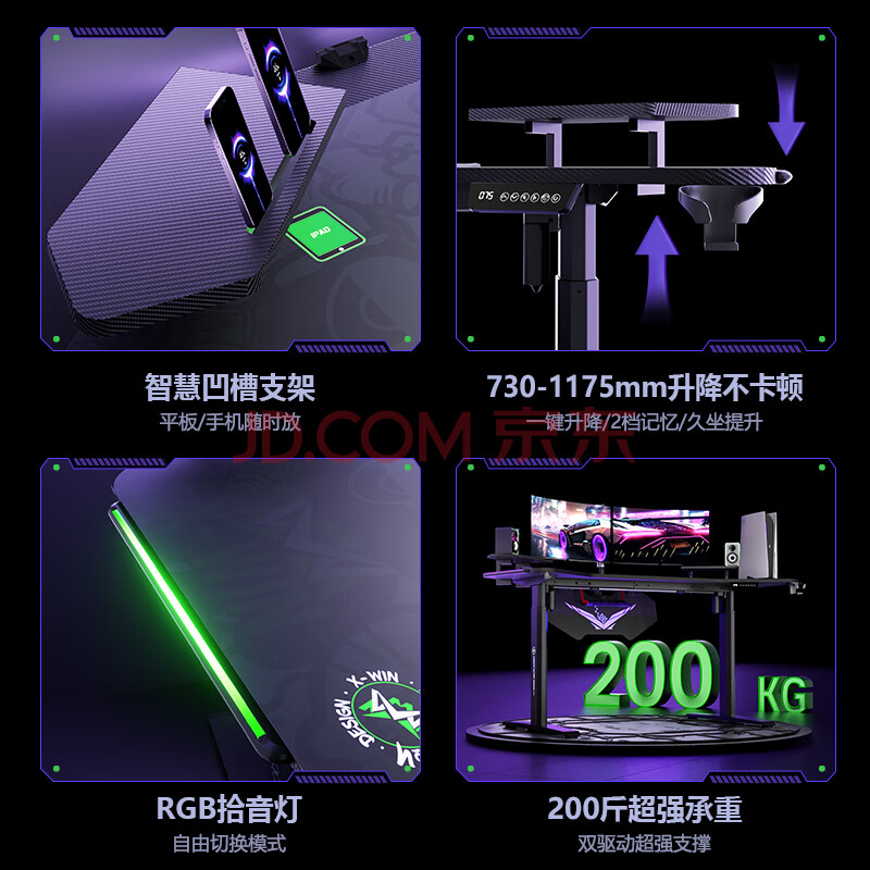 商品相册:乘胜PRO MAX电竞桌电动升降桌双电机电脑桌台式书桌办公桌学习桌1.6米第