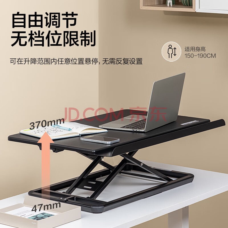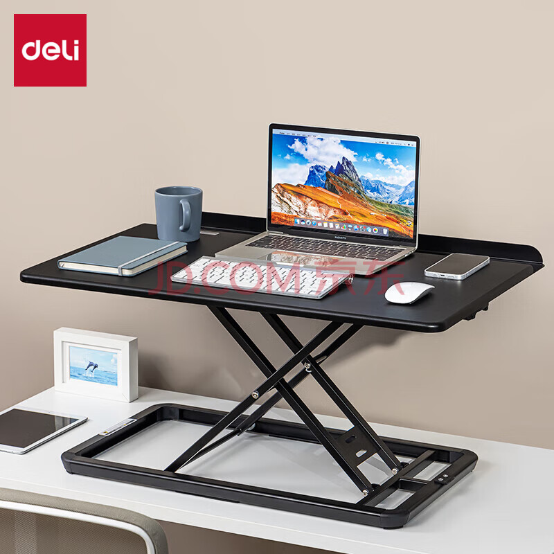 商品相册:得力(deli)90008大尺寸升降桌电脑桌 站立办公升降台 笔记本支架 黑色第