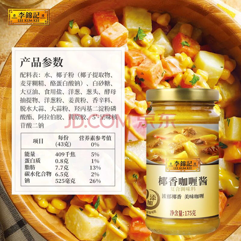 商品相册:李锦记 椰香咖喱醬(葡汁) 175g【0添加味精】即食酱 拌饭拌面焗饭沙律酱第