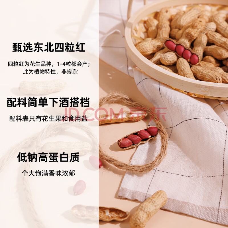 商品相册:粒上皇原味花生 500g 坚果炒货干果休闲零食带壳炒制花生下酒菜红皮花生第