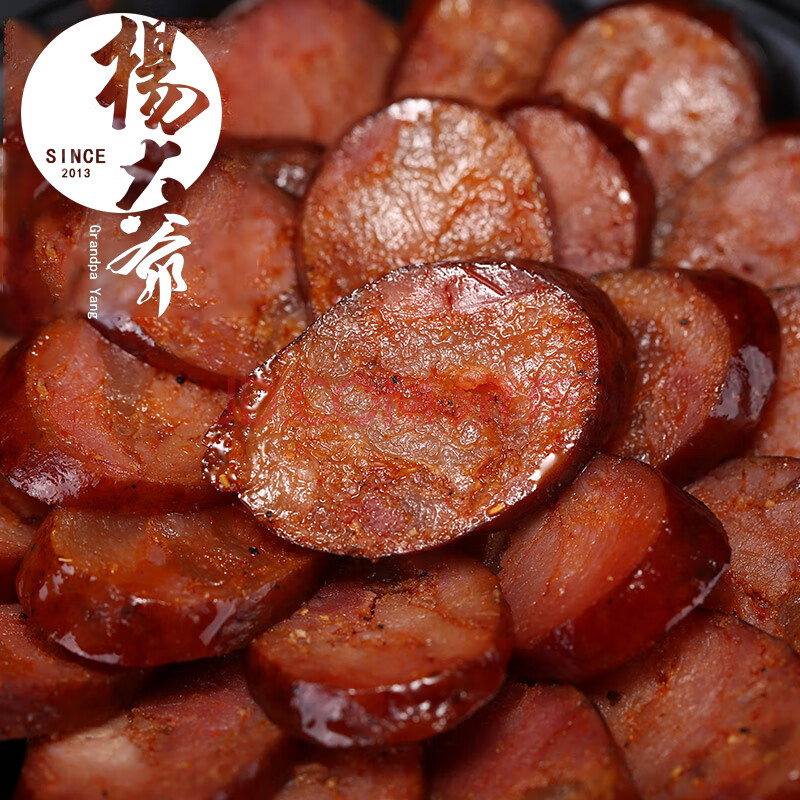 商品相册:杨大爷 烟熏川味腊肠四川特产微麻辣香肠500g 需烹饪食用第1张/共8
