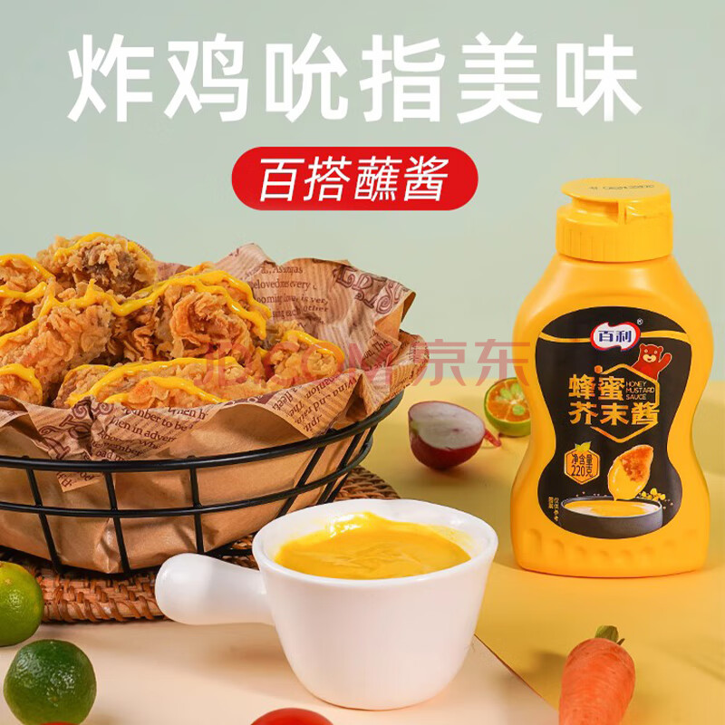 商品相册:百利蜂蜜芥末酱 黄芥末酱炸鸡沙拉酱汉堡披萨酱商用小包装 220g第