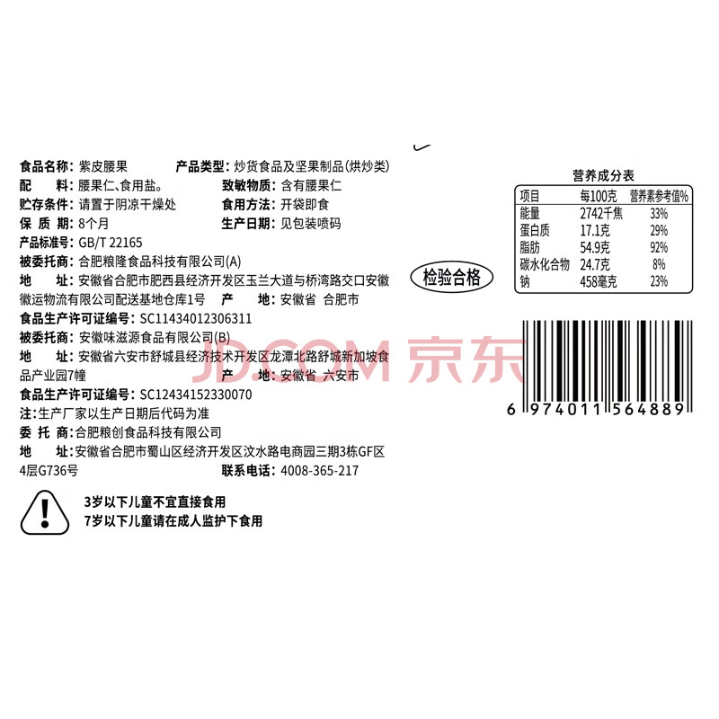 商品相册:味滋源 紫皮腰果250g A180大果坚果炒货休闲零食原味腰果仁干果小吃第
