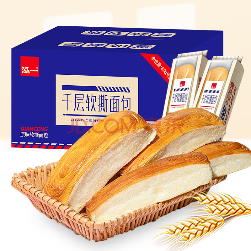 商品相册:泓一千层软撕面包 早餐面包代餐手撕吐司休闲零食饱腹糕点整箱800g第