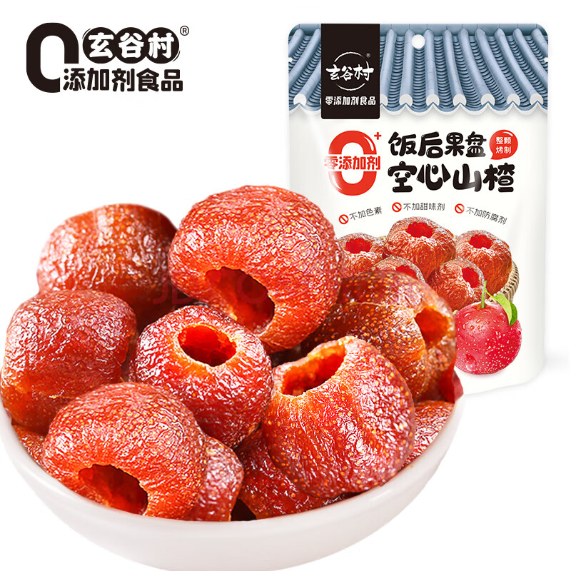 商品相册:玄谷村空心山楂70g 0添加剂0脂肪无核山楂球蜜饯果干办公室休闲山楂零食第